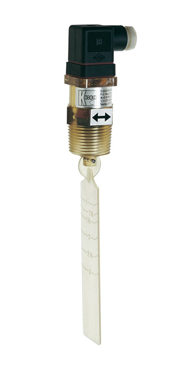 Сигнализатор за поток на течности с подвижна лопатка и превключващ ел. контакт. Работното му положение е вертикално спрямо хоризонтална тръба.