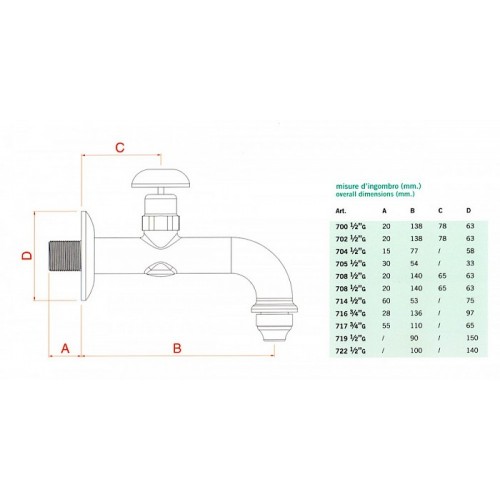 Декоративен чучур с розетка. Присъединяване: 3/4". Възможна е комбинация със спирателен кран 714.