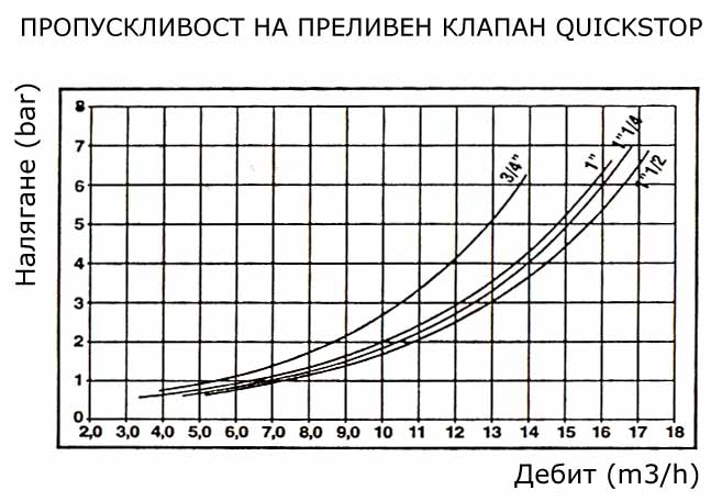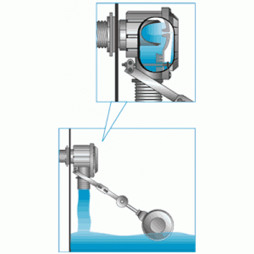 Преливен клапан с индирекно задвижване. Минималното входно налягане за плувак-вентилите тип QUICKSTOP е 0,2 bar.