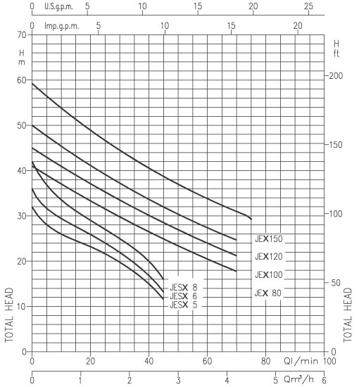 Самозасмукващи центробежни помпи, произведени от неръждаема стомана AISI 304. Помпите JESX-JEX са подходящи за захранване с вода; за хидрофорни системи за бита и малки напоителни системи, за изпразване на басейни и резервоари и основно при изпомпване на чиста вода. Производител: Ebara Pumps Europe S.p.A