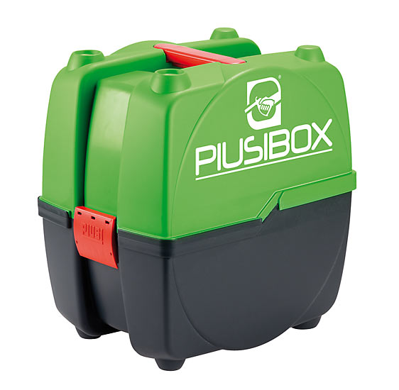 Какво Ви е необходимо докато работите? Експедитивност и благонадеждност? Съгласни сте с факта, че един работник без подходящия инструмент си губи времето напразно, а повреденият двигател означава загуба на време и пари.  PIUSIBOX може да Ви предложи чистота, порядък и рационализиране на труда. Цялото необходимо оборудване за прехвърляне на гориво, включително и маркучите, е побрано в тази здрава, компактна и леснопреносима кутия. Главната ú цел е да запази чисти частите, които имат контакт с дизеловото гориво. Специално проектираният контейнер с хоризонтална сглобка, пази природата от изтичане на нафта. Двете равномерни, гладки сглобяеми повърхности могат лесно да бъдат периодично почиствани.