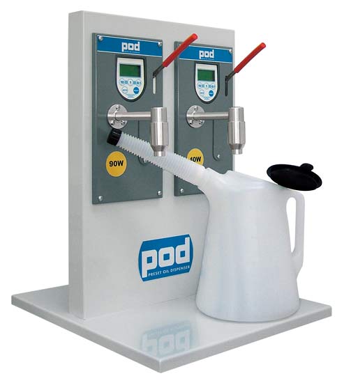 Система за зареждане на масло PIUSI POD. Желаното количество може да се зададе предварително и след достигане на посочената стойност зареждането прекъсва. Възможно е също и да се използва в ръчен режим. Разходомерът позволява да се получи точна информация. Функциите на системата POD са допълнени с много опции, които позволяват промяната на мерителните единици, могат да се запаметяват до пет стойности, както и да се калиброва разходомера. Системата се захранва от стандартни батерии, които се сменят лесно. Автоматичен противокапков клапан монтиран на единият край позволява лесно и чисто пълнене. Модулен поддържащ панел улеснява монтирането на системата.