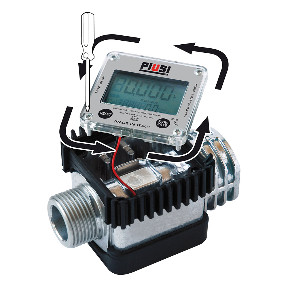 За улеснение разходомерът може да се монтира директно на пистолета. Благодарение на здравата си кутия и уплътнената електронна карта, този разходомер практически може да се използва при всякакви условия. Дисплея може да се завърта за да се чете от всякакъв ъгъл. Микропроцесорът се захранва от две лесно сменяеми дълготрайни батерии.