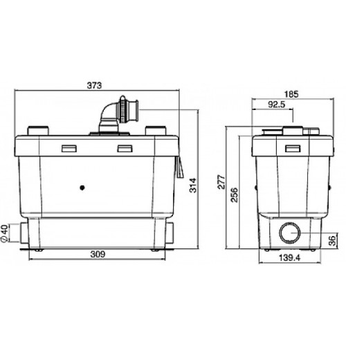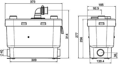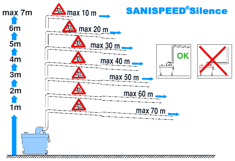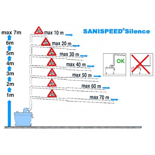 Помпа за кухни и сервизни помещания. Sanispeed е система за изпомпване на отпадни води до 7 метра вертикално. Sanispeed е снабдена с помпа с голям дебит и е предназначена за интензивно натоварване и продължителна работа. За кратко може да изпомпва и гореща вода (до 75°C).
