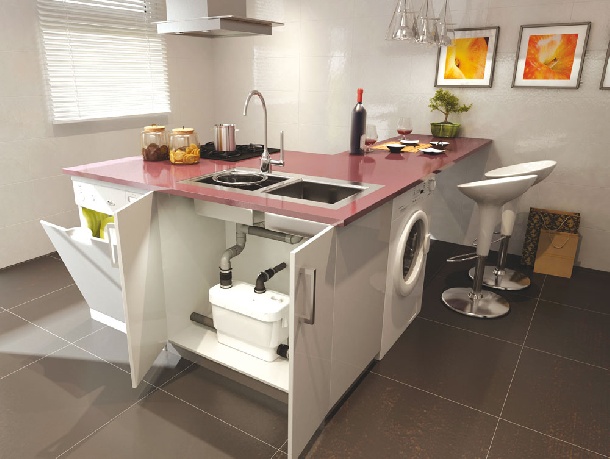 Sanivite е система за изпомпване на отпадни води от мивка, пералня или съдомиялна машина. Благодарение на нея може да се инсталира кухня или сервизно помещение дори и на места където няма, или са под нивото на съществуващата канализация. Sanivite изпомпва дори и гореща вода (до 60°C). Системата Sanivite е достатъчно малка за да бъде инсталирана под кухненския плот.